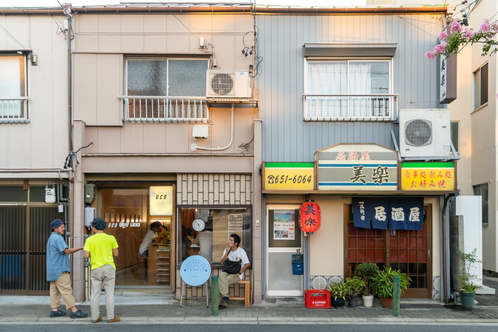 アッセンブリッジ・ナゴヤが始まった2016年に、約20年間空き家だった元・寿司屋が、LPACK.のプロジェクトとして、建築家や大工、「空き家再生プロジェクト」参加者らとともに改修され、まちの社交場《UCO》として開かれました。さまざまな活動の場として機能していたUCOは、2018年10月に一帯の長屋群の取り壊しにより解体され、駐車場となりました。その後、向かいの空き家を借り受け、LPACK.と建築家、大工、建築を学ぶ学生らの改修により、2019年3月に新たな活動の拠点《NUCO》が始動。ガラス扉や内部のカウンターなど、UCOから部材を移設し、UCOとNUCOの両空間が持つ機能が編み込まれるように設計することで、NUCOがかつて編み物教室だった歴史を継承しています。現在は年間を通して、有志で集まったメンバーを中心にカフェを運営しながら、まちの社交場として開いています。