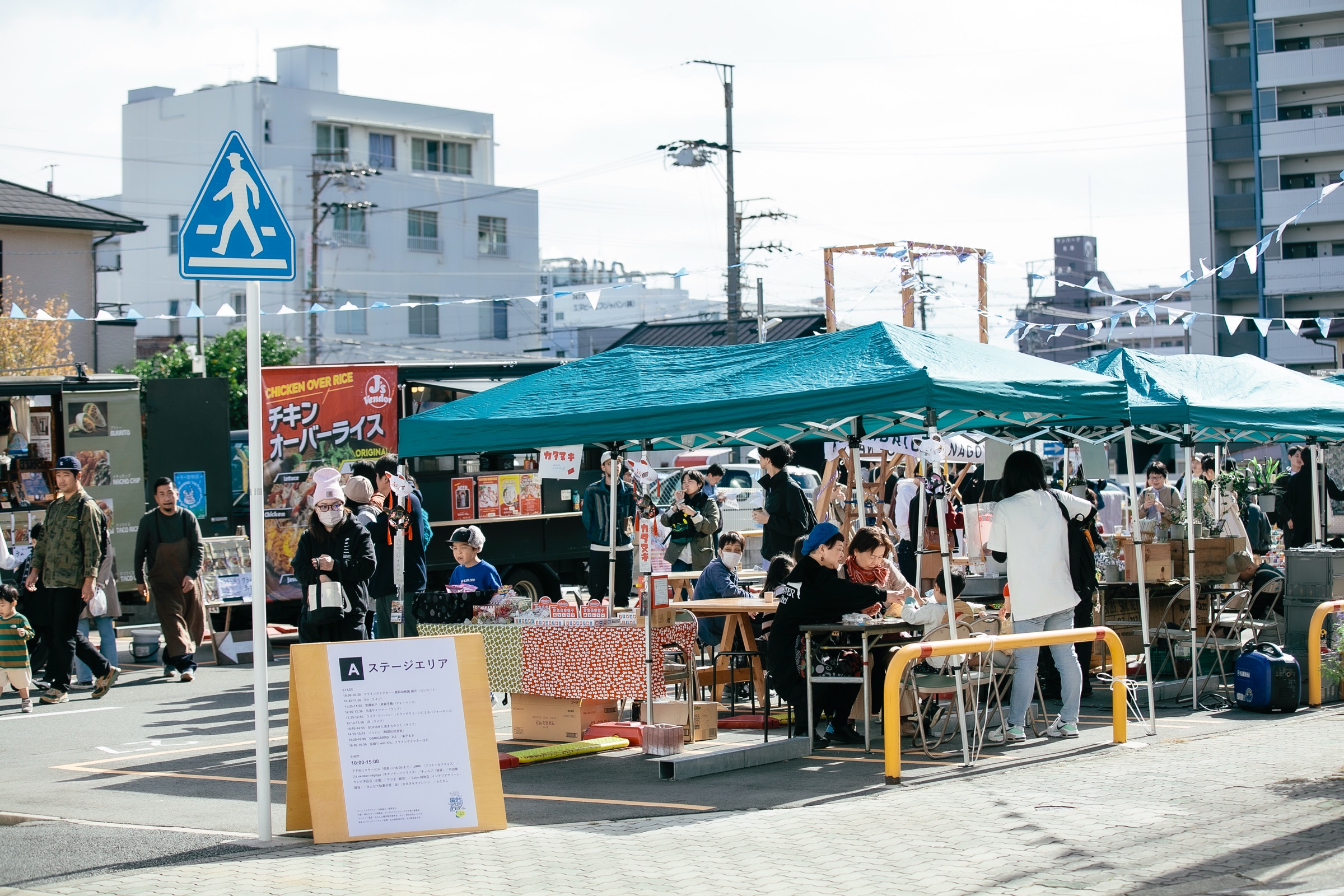 アド街ックサービス(喫茶)/JIRRI.(ブリトー&ナチョス)/J’s vendor nagoya(チキンオーバーライス)/みんなで駄菓子屋(仮)/わたがし/SUNTA BURGER STAND(ハンバーガー)/ECLAT×enne(焼菓子)/daybyday from BURGER STAND haveagoodtime.(グリルサンド)/スパイスアワー(カレー)/Qooze(珈琲)/木にドーナツが生ったら、(ドーナツ)/喫茶マスカラス(カレー)/クレープマルヤ(クレープ)