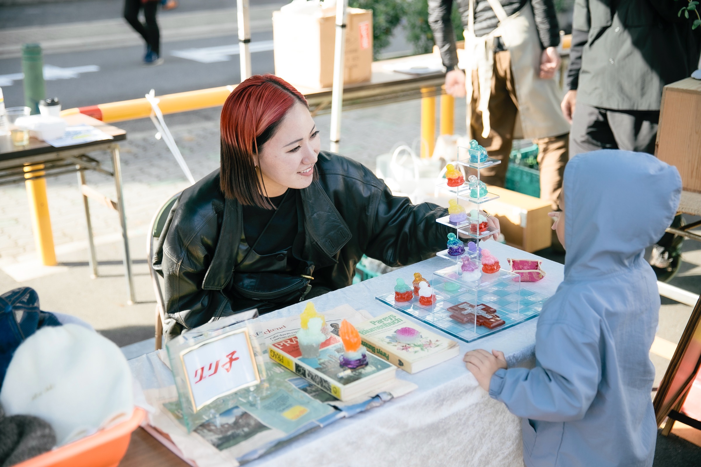 港まちアーティストブース(ワークショップ+マーケット)/ミナトランニングクラブ(シルクスクリーン体験&販売)/かおりとかすみと(ライブペイント&ドローイングワークショップ&グッズ販売)/nanon (キッズイヤリング作り)/港まち手芸部(編み物体験&販売)/みんなとまちのワークショップ(木の枝でオリジナルリースを作ろう!)