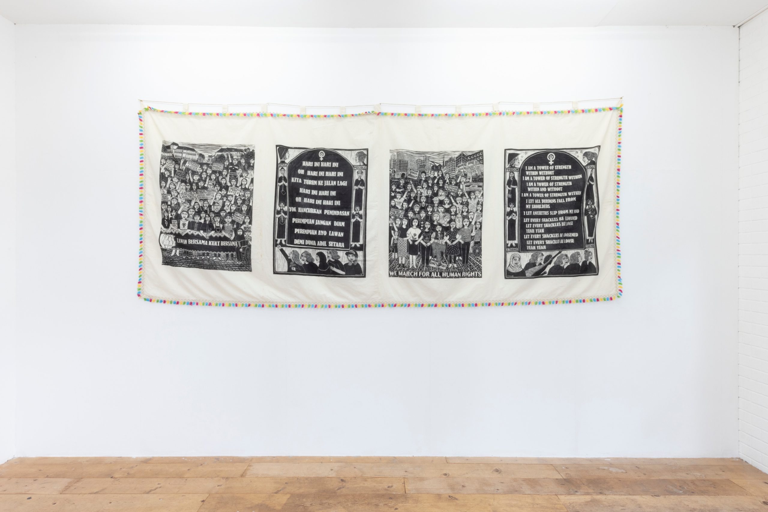 「港まちAIRエクスチェンジ2024」では、インドネシアを拠点にコミュニティ、フェミニズムに関与した木版画や音楽活動で作品を制作・発表するアーティストのフィトリアニ・ドゥイ・クルニアシさんの作品展示を行います。