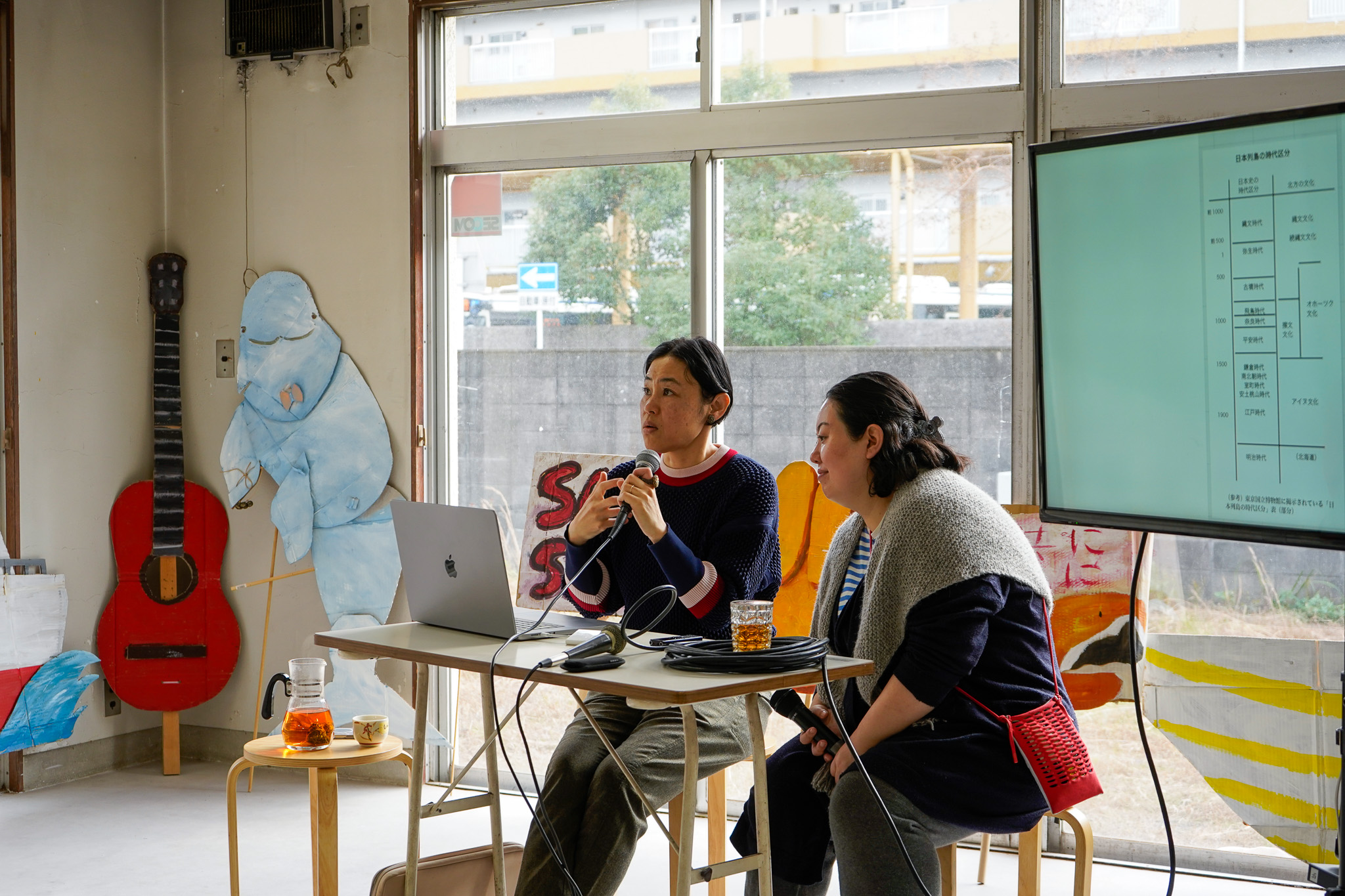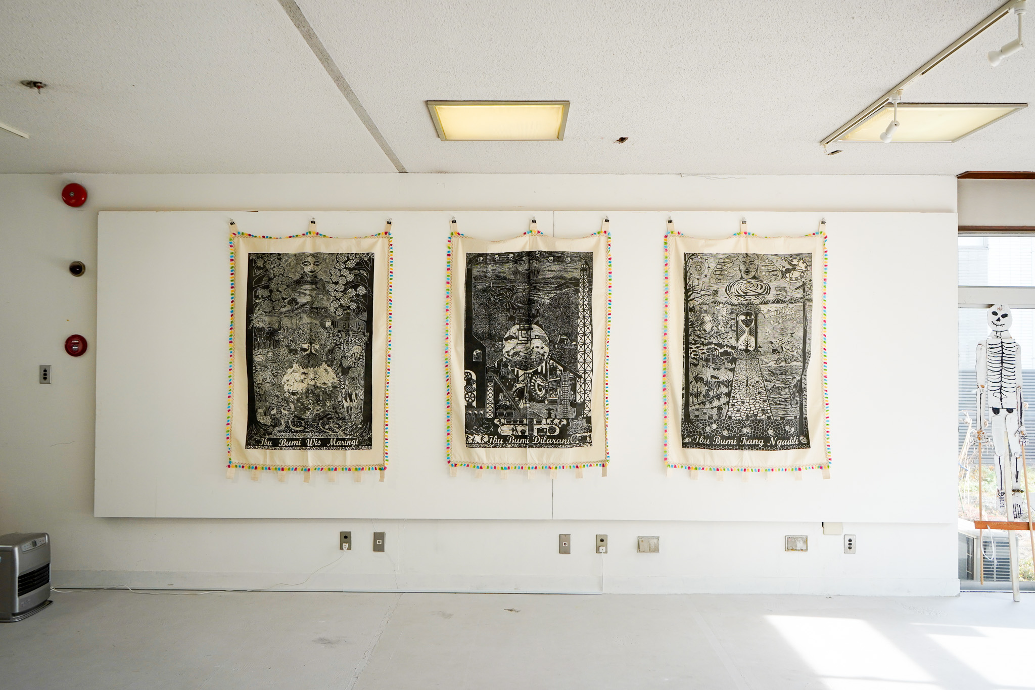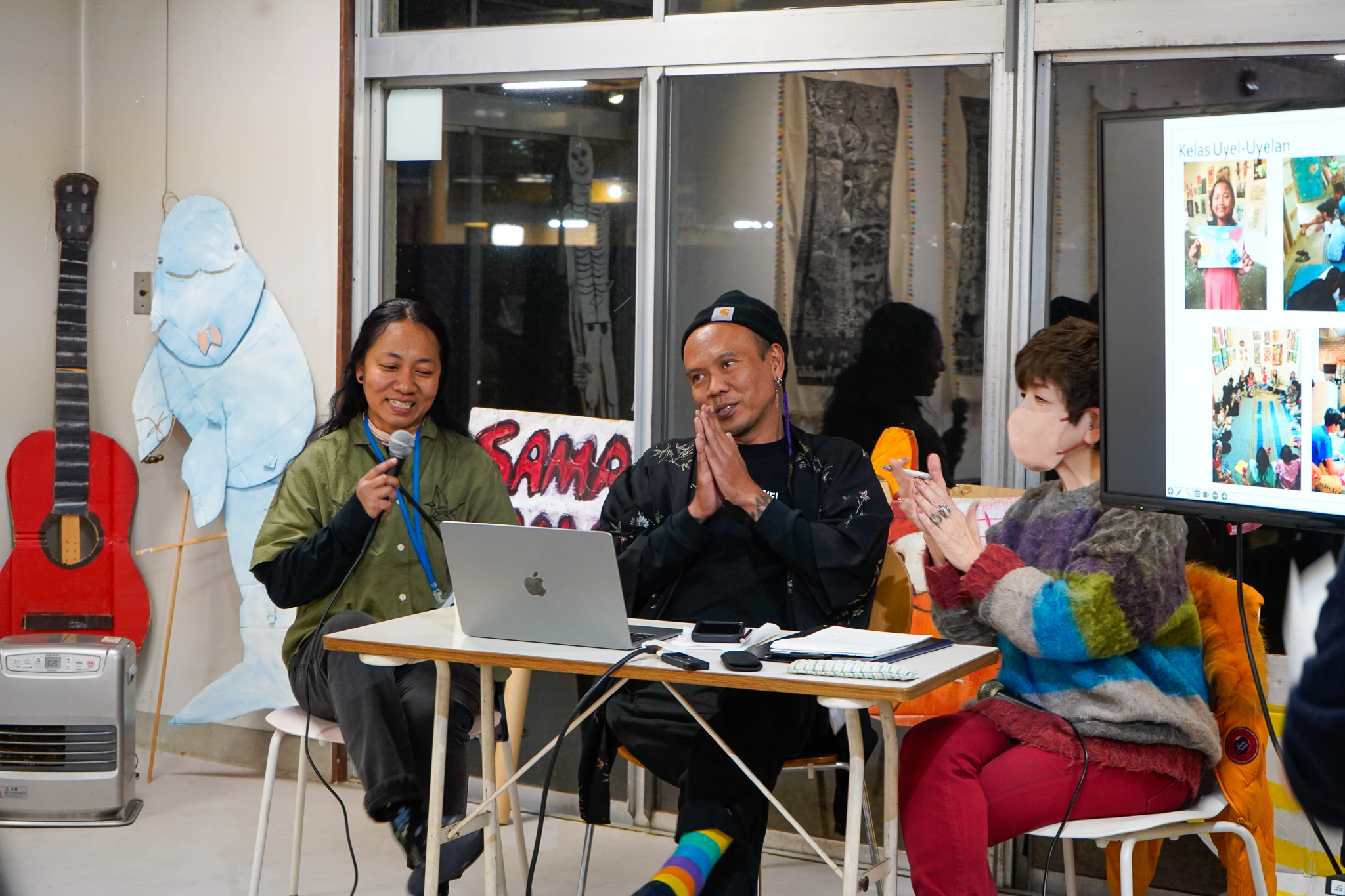 「港まちAIRエクスチェンジ2024」の成果発表として、滞在中のフィトリアニ・ドゥイ・クルニアシさん、バユ・ウィドドさん、進藤冬華さんが滞在中に制作した作品の展示やスタジオを公開し、アーティストトークを行います。